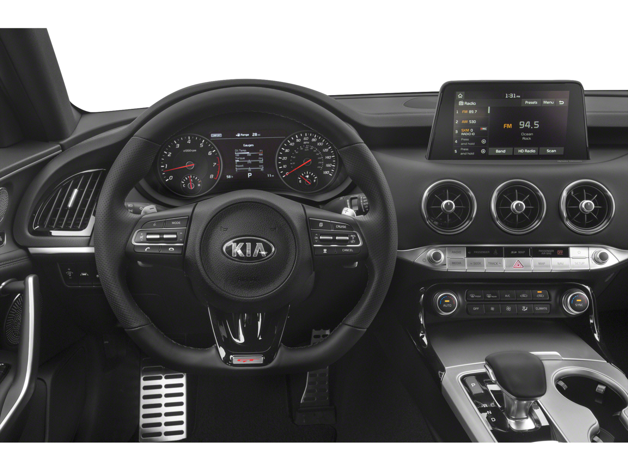 - Radio: AM/FM/MP3/HD/SiriusXM harman/kardon Audio -inc: 720 Watts, navigation system, 8" color touch-screen display, 15 speaker premium surround sound including dual underseat subwoofers, QuantumLogic, ClariFi digital music restoration, UVO eServices infotainment system, support for Android Auto and Apple CarPlay, USB input, Bluetooth® wireless connectivity and steering-wheel-mounted controls